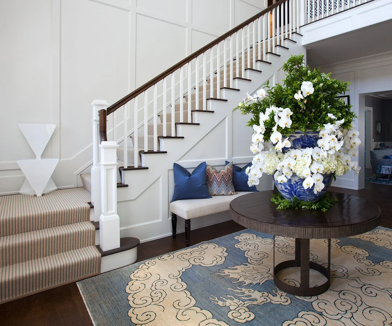 “My inspiration for this Bridgehampton house came from the challenge to find a chandelier that was large enough to fill a 2 story entry.